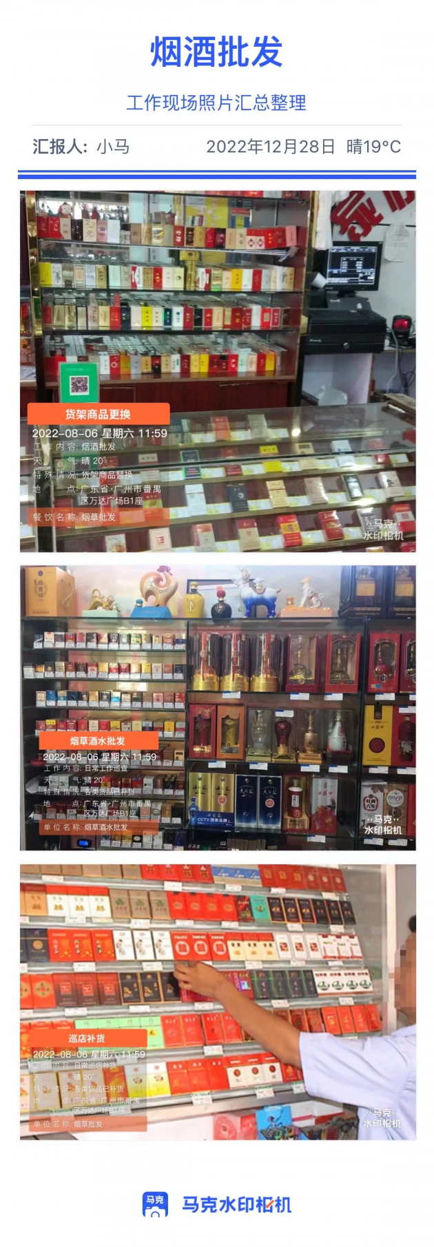 某白酒品牌一线业务员在做销售或铺货的时候,实时记录与反馈给总部的信息无法校验真实性,导致很多区域配送拜访不到位,出现偷懒、谎报酒水破损的情况。自从使用马克水印相机后,拍摄照片时就能够用水印记录下当下的时间、地点,且水印均不可修改,可作为真实的工作证明,品牌方对业务员的管理效率得到很大的提升。