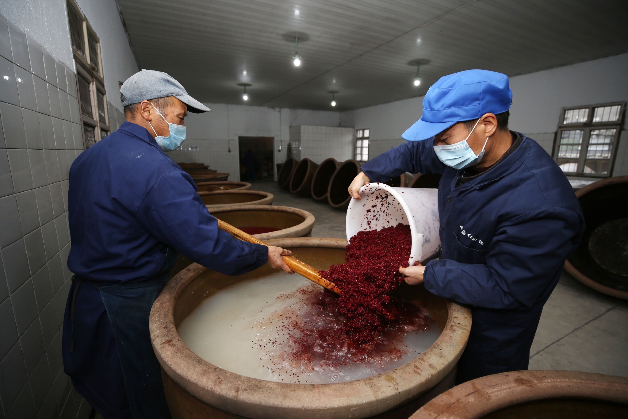 浙江省东阳市有在冬季酿造红曲酒的传统。眼下,东阳市的酒厂内酒香四溢,酿酒师傅忙着酿制红曲酒,一派繁忙景象。