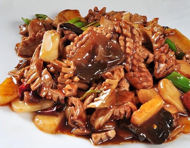 是一道名吃,双脆指的是猪肚和猪腰子,做出来的口感是脆爽又入味的,因为这两道食材本身腥味是比较重的,所以在处理的过程中一定要完全去除筋膜,然后用大料去卤,卤到非常入味,完全没有异味才可以,这样吃起来口味更佳。